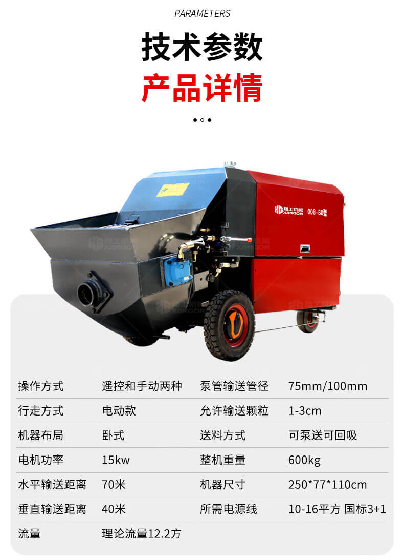 80型澆筑泵優(yōu)勢多多,性能可靠,設(shè)備各個(gè)結(jié)構(gòu)生產(chǎn)制作科學(xué),電機(jī)功率大、性能穩(wěn)定、施工效率高等優(yōu)勢,使用電動澆筑泵大大提高了施工效率,降低勞動強(qiáng)度,節(jié)約人工,被廣泛應(yīng)用。是工程施工的好幫手。