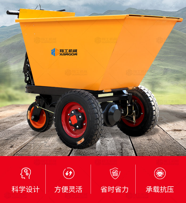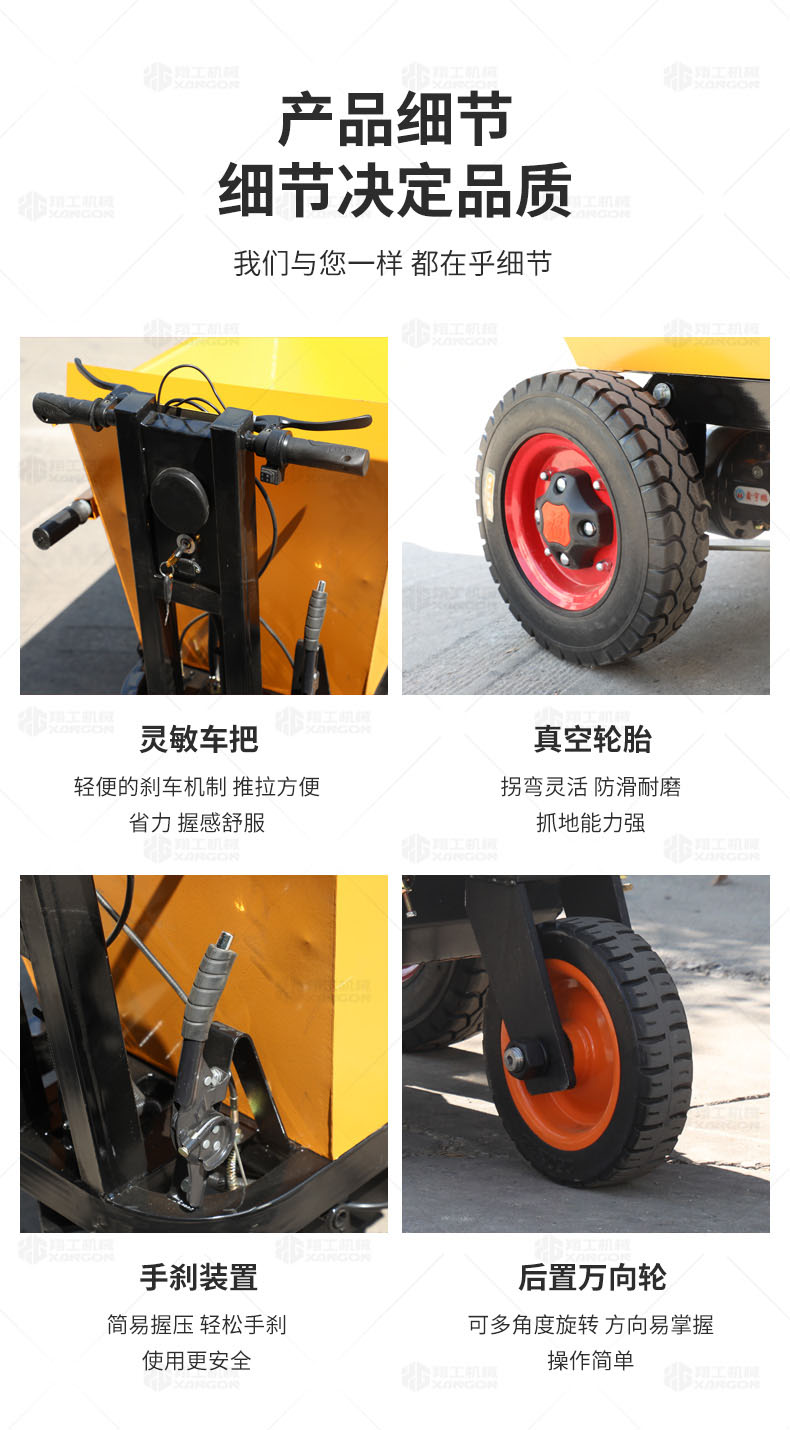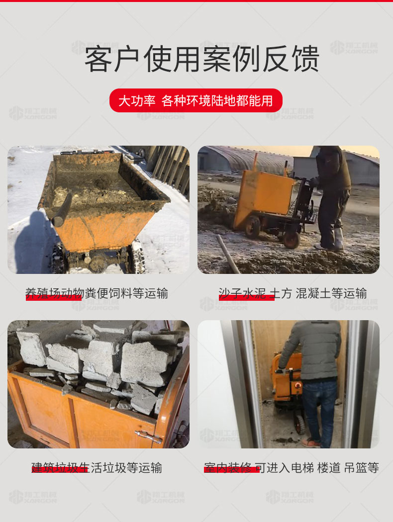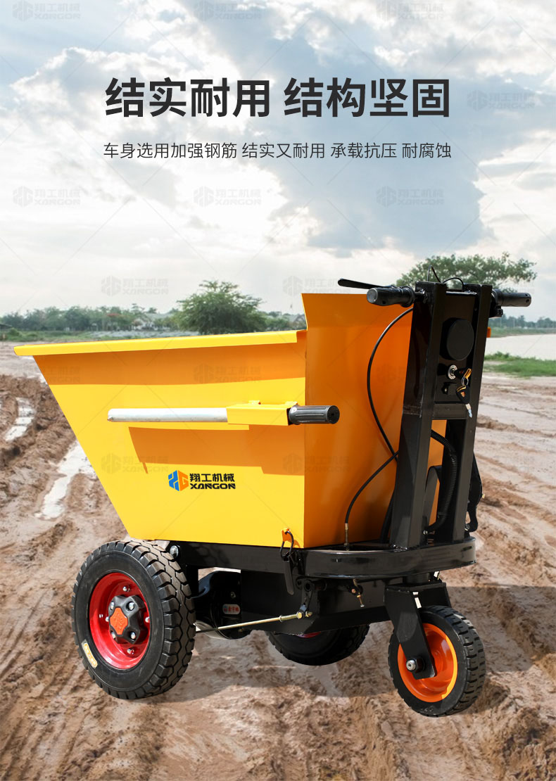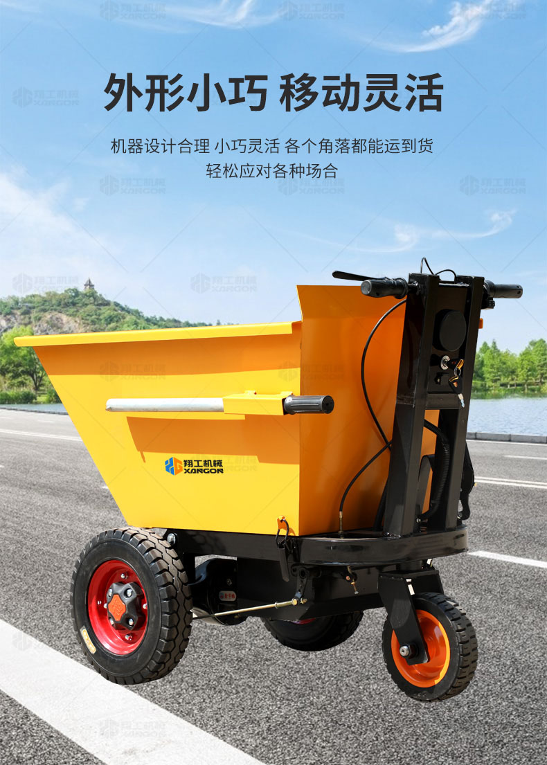 此款車適用于建筑工地、室內(nèi)裝修、養(yǎng)殖場、工廠等場所,運(yùn)輸沙子、水泥、土方、混凝土、建筑垃圾生活垃圾、養(yǎng)殖場動物糞便、飼料等,體積小操作簡單靈活,可原地360度轉(zhuǎn)圈,可進(jìn)入樓層、樓道、電梯、吊籃等各種狹小空間作業(yè),是您必不可少的裝卸助手。