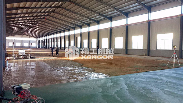 在手扶混凝土攤鋪機(jī)整平頭有用的施工范圍內(nèi),首先人工將混凝土初平至比地坪標(biāo)高高1-2㎝(具體高度依混凝土坍落度而定),然后用手扶混凝土攤鋪機(jī)一次性完成振搗、壓實(shí)、整平工作。