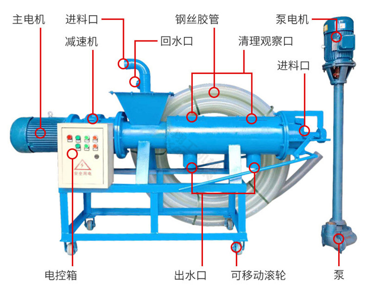 該系列雞糞脫水機具有體積小、轉(zhuǎn)速低、操作簡單、安裝、維修方便、費用省、效率高、投資回收快,不需添加任何絮凝劑等特點;該機采用的螺旋軸、篩網(wǎng)為不銹鋼制作;禽畜類糞便處理機能將雞糞、牛糞、豬糞等禽畜糞便原糞水分離為液態(tài)有機肥和固態(tài)有機肥;液態(tài)有機肥可直接用于農(nóng)作物利用吸收;固態(tài)有機肥可運到缺肥地區(qū)使用,也可起到改觀土壤結(jié)構(gòu)的作用,同時經(jīng)過處理可制成有機復(fù)合肥。