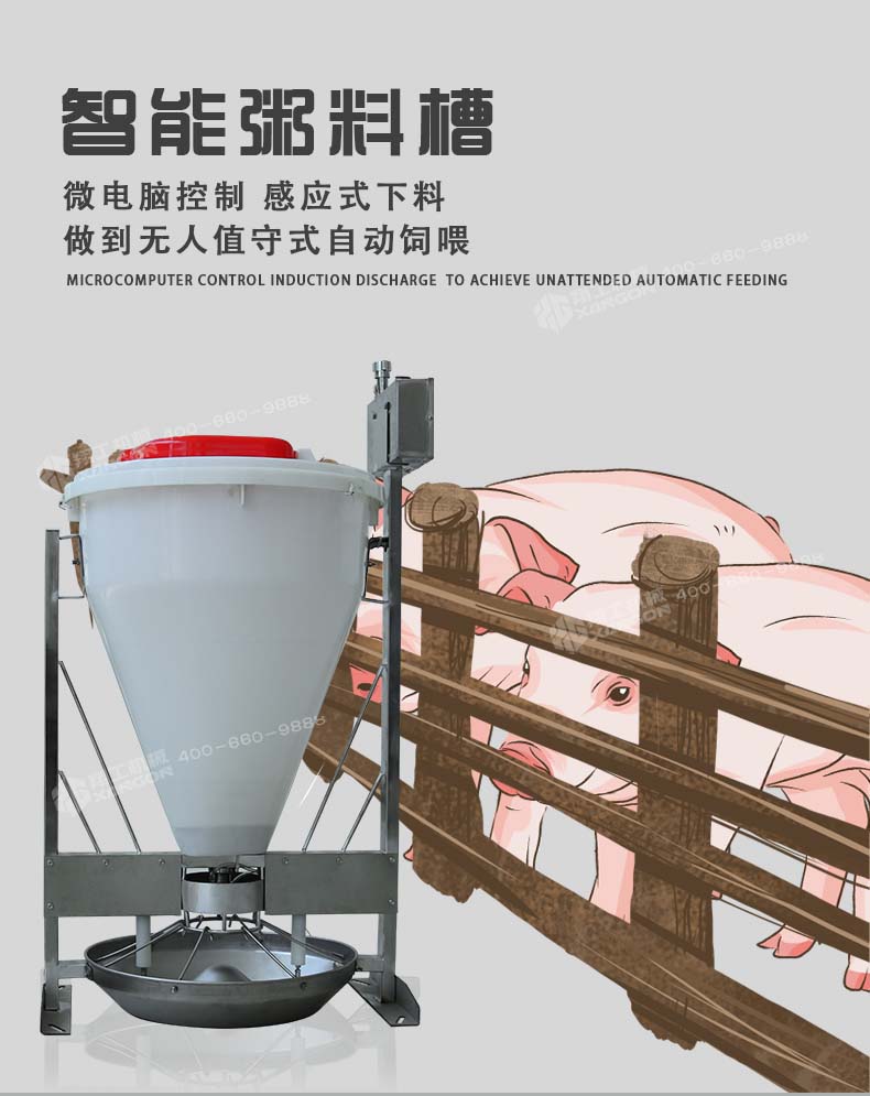 4.智能料槽,粥料器,采用微電腦控制,感應(yīng)式下料,做到無人值守式自動(dòng)飼喂。核心控制部件采用模塊式,灌注膠全密封,防水防塵,經(jīng)久耐用,而且更換方便。