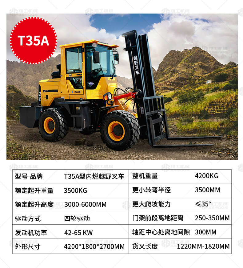 3.普通叉車只能在平整的路面上作業(yè),而越野叉車既可以在普通路面上作業(yè),還可以在山路泥路崎嶇道路作業(yè),輪胎抓地力強,不打滑。