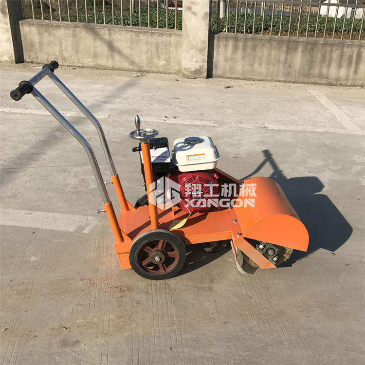 該機(jī)使用發(fā)動(dòng)機(jī)帶動(dòng)鋼絲刷旋轉(zhuǎn)打磨進(jìn)行清掃工作,主要用于路面上的泥土及水泥路面的浮漿清理,增加標(biāo)線粘結(jié)力。